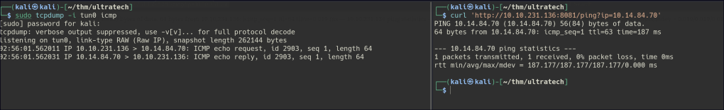 Let’s test the ping API with our host IP and observe it on TCPdump.