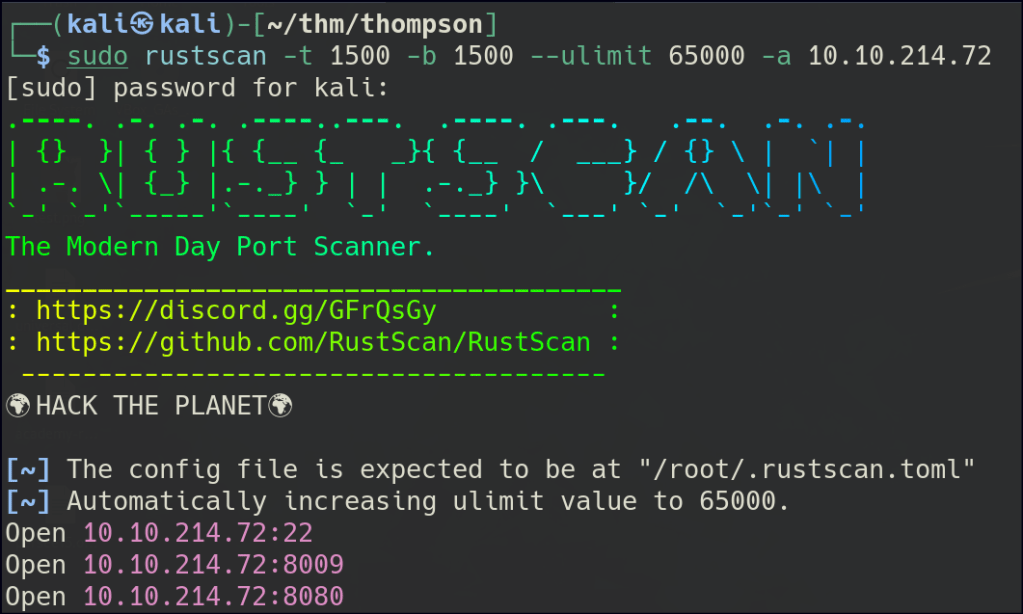 Let’s start with Rustscan to find for the open ports.