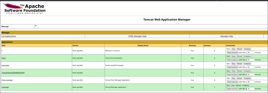 It seems brute forcing tools might lock you out. I tried again with the default credentials found in the Unauthorized page and I’m able to access the manager app.