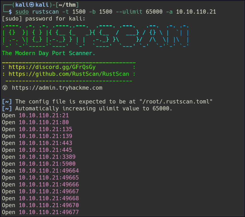 Let’s start with Rustscan to find for the open ports.