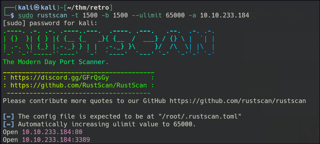 Let’s start with Rustscan to find for the open ports.