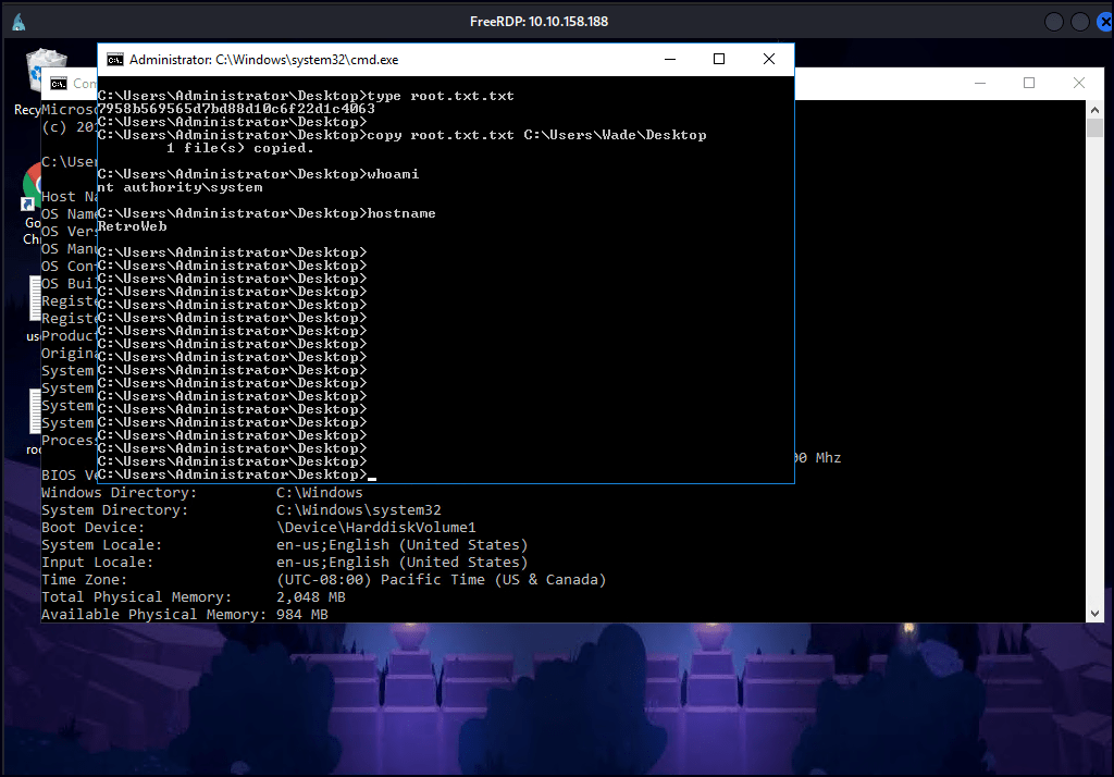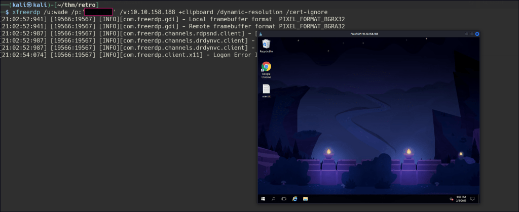 Since we discovered Wade’s password, I used RDP access and successfully gained entry.