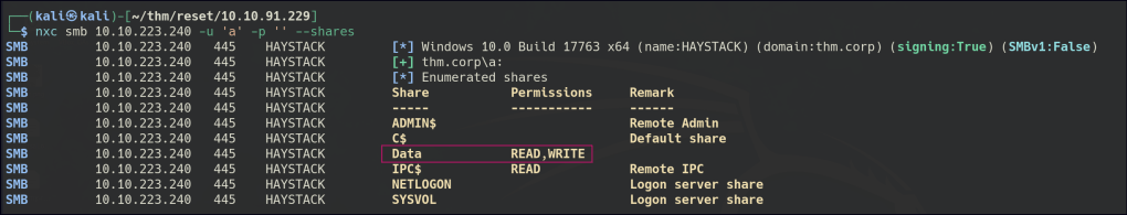 | DNS_Computer_Name: HayStack.thm.corp