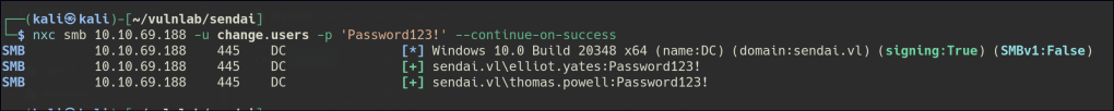I used Impacket’s changePassword to remotely change the password for both of the users.