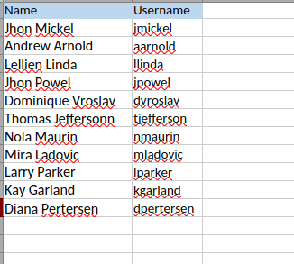 The folder contains an .ods file that can be opened in LibreOffice, revealing potential usernames.