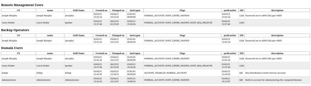 Since we have valid credentials, we proceeded with standard enumeration. By performing an LDAP domain dump, we discovered a user’s password stored in the description field.